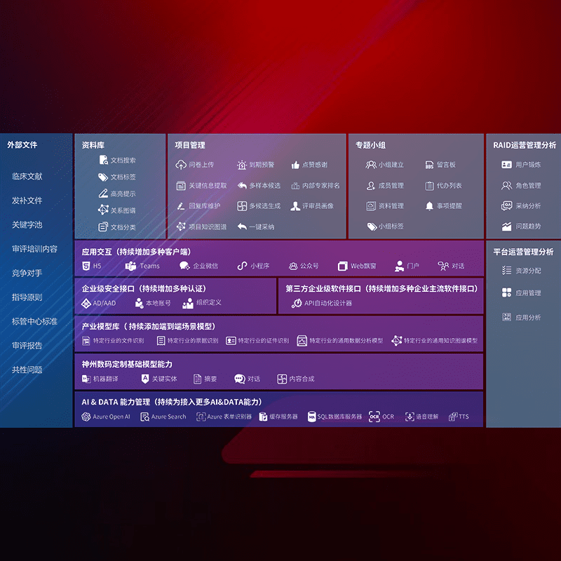 医疗器械产品上市前,,,要熟悉严格与繁复评审标准,,整理分析监管机构指导文件中的海量信息。。。。企业急需一个智能化解决方案,,,提升知识管理效率,,,,提高评审通过率,,,,以提升其市场竞争力。。